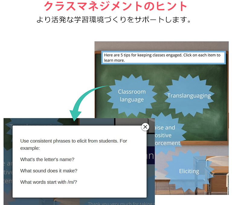 フォニックスを楽しく、インタラクティブに、体系的に教えることで、教室の雰囲気は大きく変わります。子どもたちは主体的に学び、自分の力で英語を読んで理解できることに喜びや自信を感じるようになります。